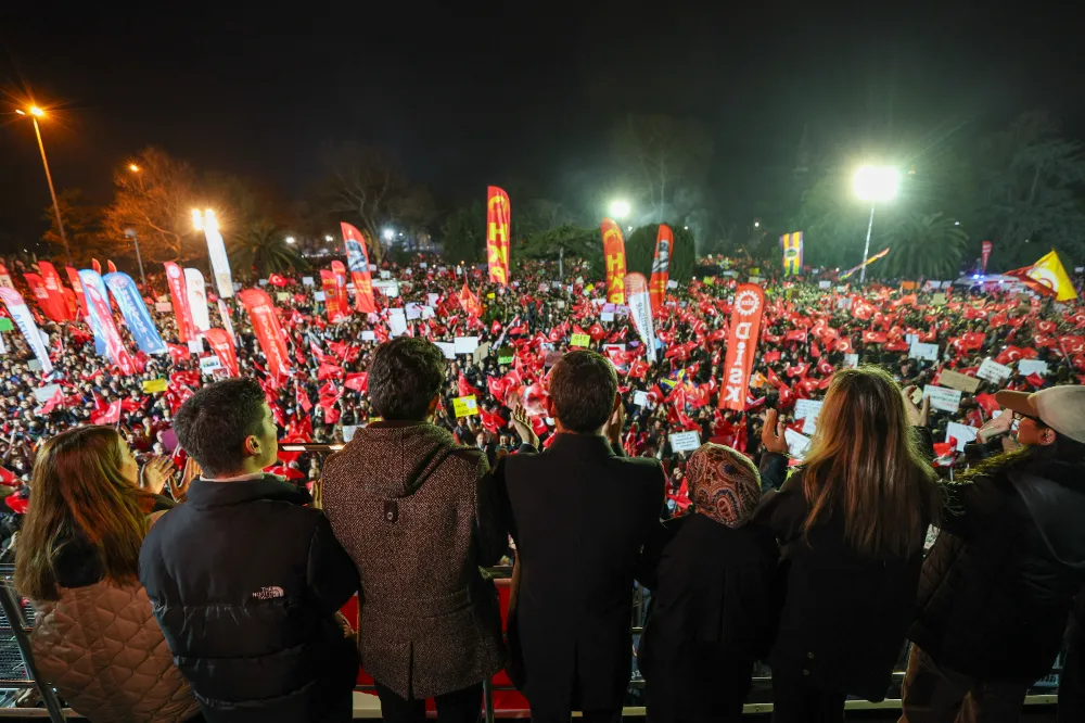 Özgür Özel, Saraçhane’de bulunan İstanbul Büyükşehir Belediye Başkanlığı önünde toplanan yurttaşlarla bir araya geldi