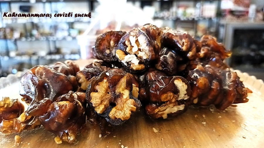 Kahramanmaraş’ta yapılan Köpük Sucuğu ise beyaz rengi ve yumuşak dokusuyla diğerlerinden ayrılıyor. Günümüzde sanayi üretiminde glikoz bazlı şıralarla yapılan versiyonlar bulunsa da, doğal pekmezle hazırlanan geleneksel cevizli sucuklar hâlâ en makbulü olarak görülüyor.