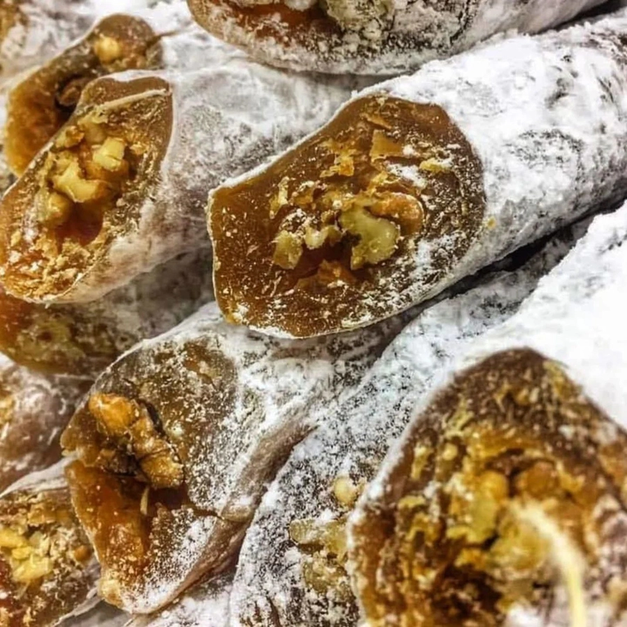 Yapımında yöreye özgü “mezrone” cinsi üzümlerden elde edilen doğal şıra ile hazırlanıyor. Şeker, koruyucu ya da katkı maddesi içermeyen bu geleneksel lezzet, yalnızca ceviz ve üzüm şırasından yapılıyor. Hazırlanışında kelebek taneli cevizler, ince şıra tabakasıyla kaplanarak “tek batırımlık” şekilde hazırlanıyor. Bu yöntem, sucuğun hem daha yumuşak hem de aromatik bir kıvamda kalmasını sağlıyor. Doğal yöntemlerle kurutulan cevizli sucuklar, ev tipi üretim tarzıyla taptaze şekilde tüketiciye ulaştırılıyor.