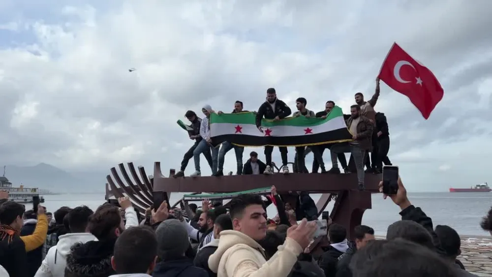 İzmir'de yaşayan Suriyeliler, Suriye'deki 61 yıllık Baas rejiminin devrilmesinin ardından toplanarak kutlama yaptı.