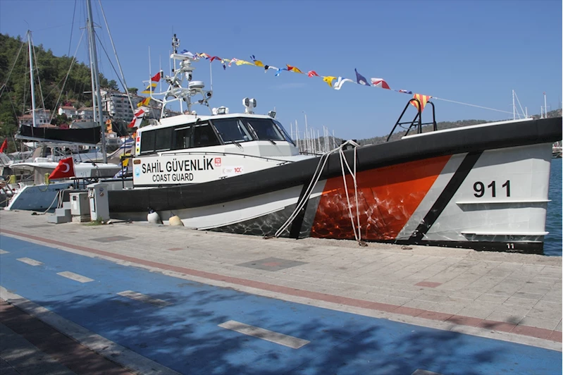 Fethiye'de Sahil Güvenlik TCSG-911 botu limanda ziyaretçilerini ağırladı. Vatandaşlar çocuklarıyla askeri personel eşliğinde botu gezdi.