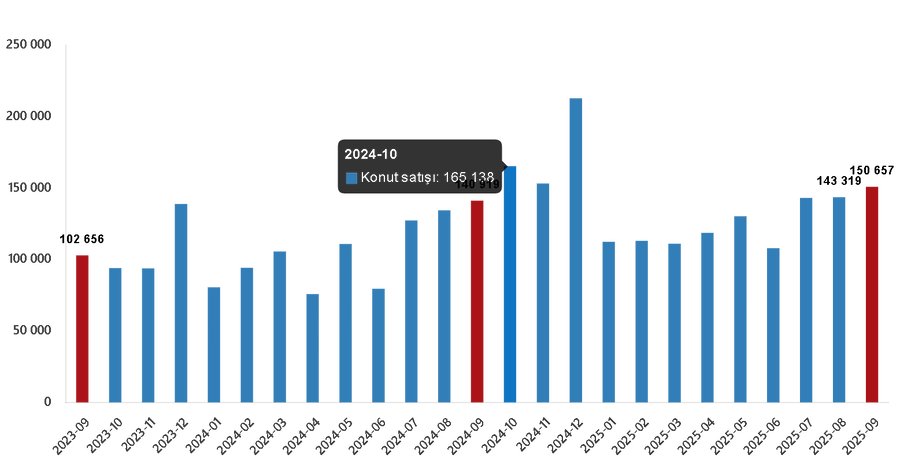 TÜİK verilerine göre, Türkiye genelinde Eylül ayında 150 bin 657 konut satıldı. Bu rakam, Eylül 2024’e göre %6,9 artışa işaret ediyor.