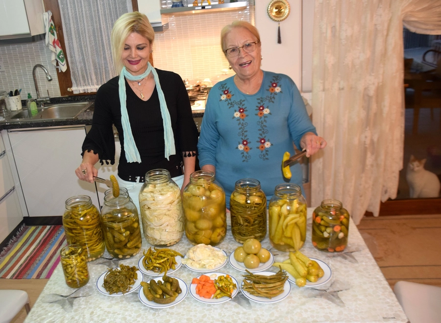 Şenay İnceoğlu, geleneği sürdürmenin sadece geçmişi hatırlamak ve sofraları şenlendirmek olmadığını, aynı zamanda yeni nesillere aktarılacak değerli bir miras olduğunu vurguluyor. Kış hazırlıklarını kızlarıyla birlikte sürdürdüğünü, bu durumun kendisi için sadece bir rutin değil, geçmişle gelecek arasında bir köprü olduğunu söylüyor. “Evimizde tarhana, reçel, salça, domates sosu ve biber-bamya kurutmalıklarını hazırladık, şimdi sıra kışın olmazsa olmazlarından kırma yeşil zeytin ve turşu kurumuna geldi” diyor. Diğer kış hazırlıkları gibi turşu telaşının da çocukluğundan tanıdık bir ritüel olduğunu belirten İnceoğlu, “O zamanlar annem ve anneannemle yaşardık tuşu telaşını. Kavanozlar dizilir, bahçemizden toplanan sebzeler özenle hazırlanır, mutfağı sirke kokusu sarardı. Turşunun her aşamasında biz çocuklar da büyüklerimize yardım ederdik. Annem sebzeleri yıkarken biz kurular, bizler küçük ellerimizle sarımsakları kavanoza dizerken büyükannemiz salamuranın tuzunu ayarlardı. Evimizin bereketini arttıran, kültürümüzü yaşatan, kuşaktan kuşağa aktarılan bu geleneğin heyecanını şimdi kızlarımla yaşıyor, annemden ve anneannemden öğrendiklerimi çocuklarıma aktarıyorum. Her kavanozda geçmişin emeği, geleceğe bırakılan miras, çocukluğumdan kalan hatıralar, annemin eliyle anneannemin sabrı, kızlarımla biriktirdiğimiz anılar ve nesiller boyunca süregelen aile geleneğinin izleri saklı. Bu hazırlıklar sadece soframızı değil, aile bağlarımızı da besliyor. Birlikte üretmeyi yaşatırken, paylaşmayı ve dayanışmayı canlı tutuyor.”