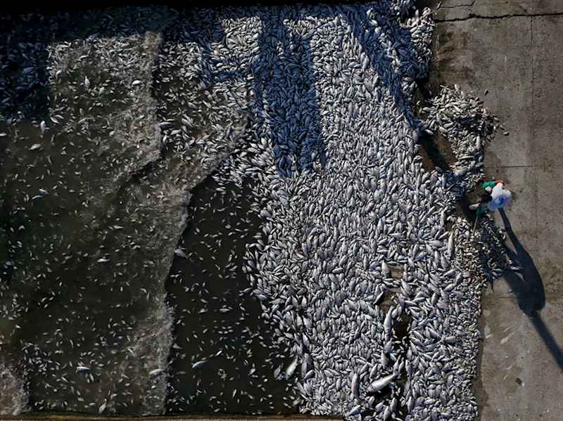 İzmir Büyükşehir Belediyesi ekipleri ise denizdeki ölü balıkları toplamak için çalışma yürütüyor.