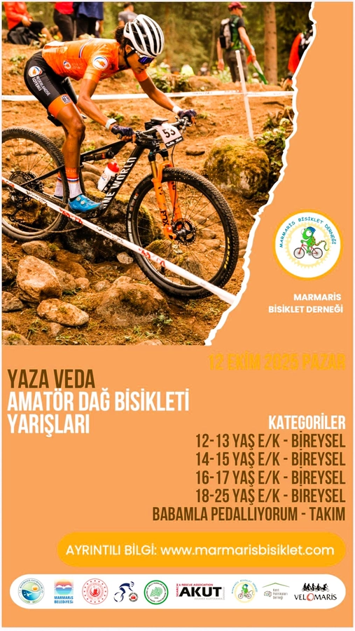 Muğla’nın Marmaris Bisiklet Derneği, bisiklet kültürünü yaygınlaştırmak ve sürdürülebilir ulaşımı teşvik etmek amacıyla 12 Ekim Pazar günü “Yaza Veda Amatör Dağ Bisikleti Yarışları” düzenliyor. Adaköy Mahallesi’ndeki 3,2 kilometrelik orman içi parkurda gerçekleşecek yarışlarda, 12-25 yaş arası genç sporcular bireysel olarak, 8-11 yaş grubundaki minikler ise ebeveynleriyle takım kategorisinde pedal çevirecek.
