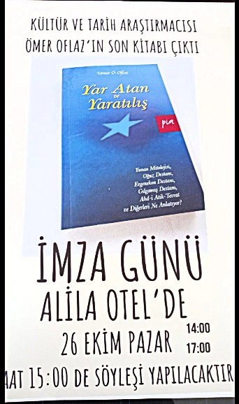 Kültür ve tarih araştırmacısı Ömer Oflaz, “Yaratan ve Yaratılış” adlı son kitabında mitolojiler, destanlar ve kadim anlatılar üzerinden insanlığın kökenine dair derin bir yolculuğa çıkarıyor. Kitabın imza günü ve söyleşisi 26 Ekim Pazar günü Köyceğiz Alila Otel’de yapılacak.